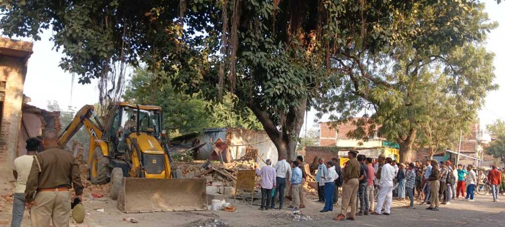 सार्वजनिक सड़क पर बसे चार लोगों के घरों पर चला बुलडोजर