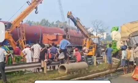 ट्रक को ट्रेलर ने मारी टक्कर, कृषि यंत्र बिखरे *गोपीगंज में हादसा, चालक खलासी बाल बाल बचे,लगा जाम।* भदोही। भदोही के गोपीगंज...