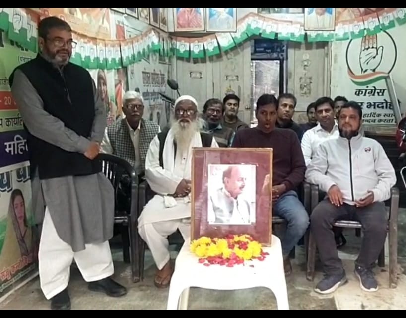 भदोही। नगर के मशाल रोड भदोही स्थित काग्रेंस कैम्प कार्यालय में काग्रेसियों ने स्वर्गीय कमर मलिक की तस्वीर पर गुलों का नज़राना पेश कर उनकी मग़फिरत के लिए दुआ की। इस मौके पर जिला कांग्रेस कमेटी के उपाध्यक्ष मुशीर इक़बाल ने खिराज-ए-अकीदत पेश करते हुए कहाकि वह काग्रेंस के एक समर्पित नेता थे। वह काग्रेंस में अन्तिम सांस तक थे, और कांग्रेस के हर कार्यक्रमों में बढ़चढ़ कर शामिल होते थे।